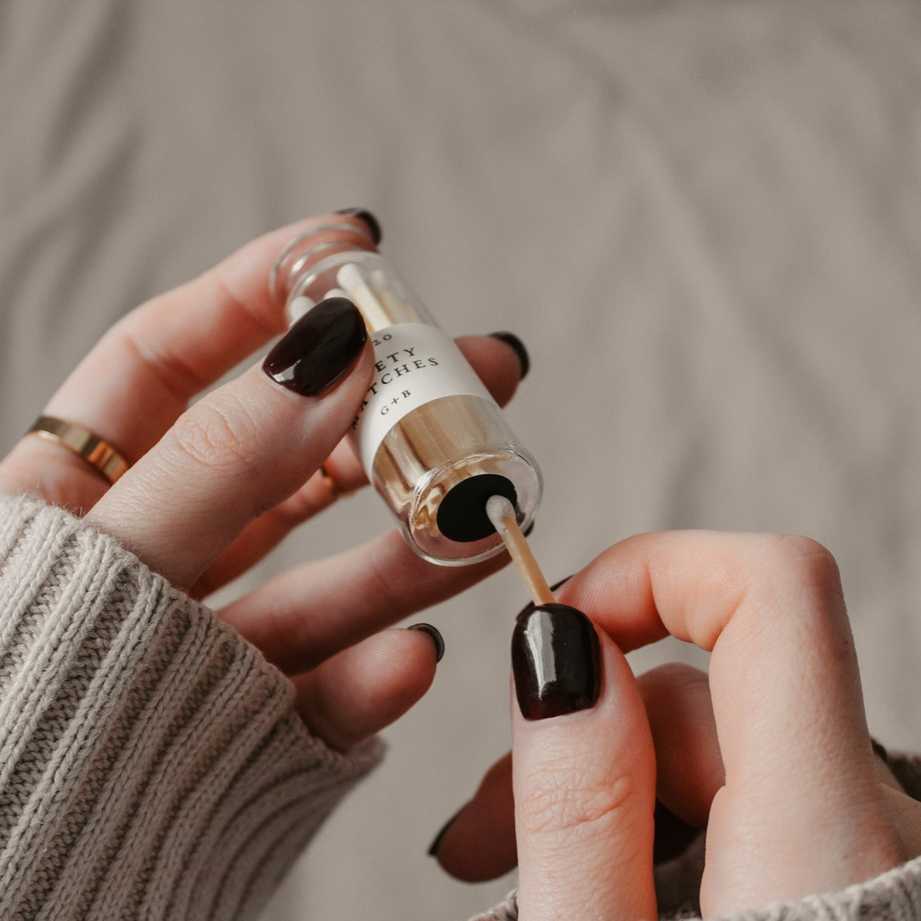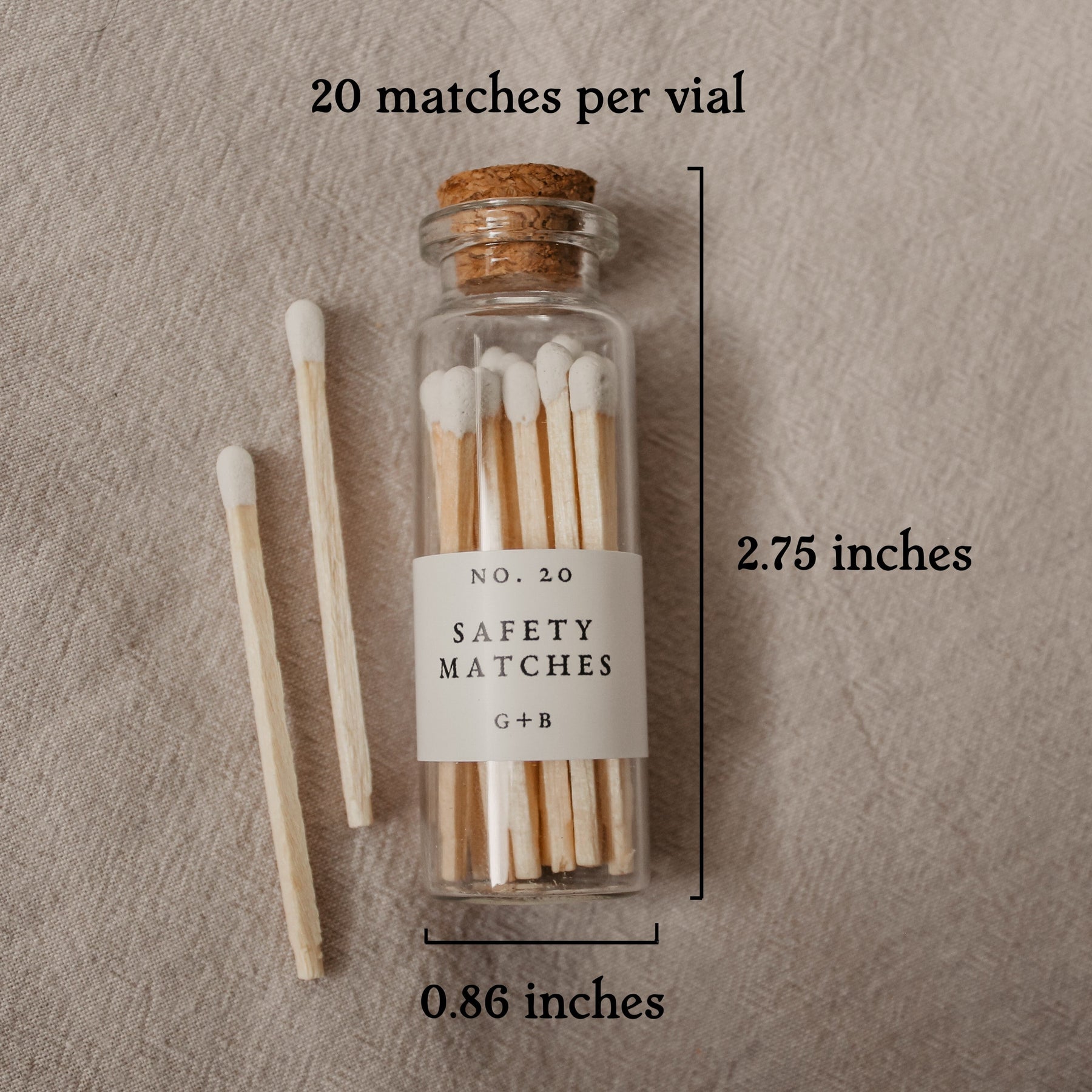 Our pretty glass bottles with cork lids come in the dark academia gift box with 20 safety matches. This picture shows their measurement of 2.75" x .86"