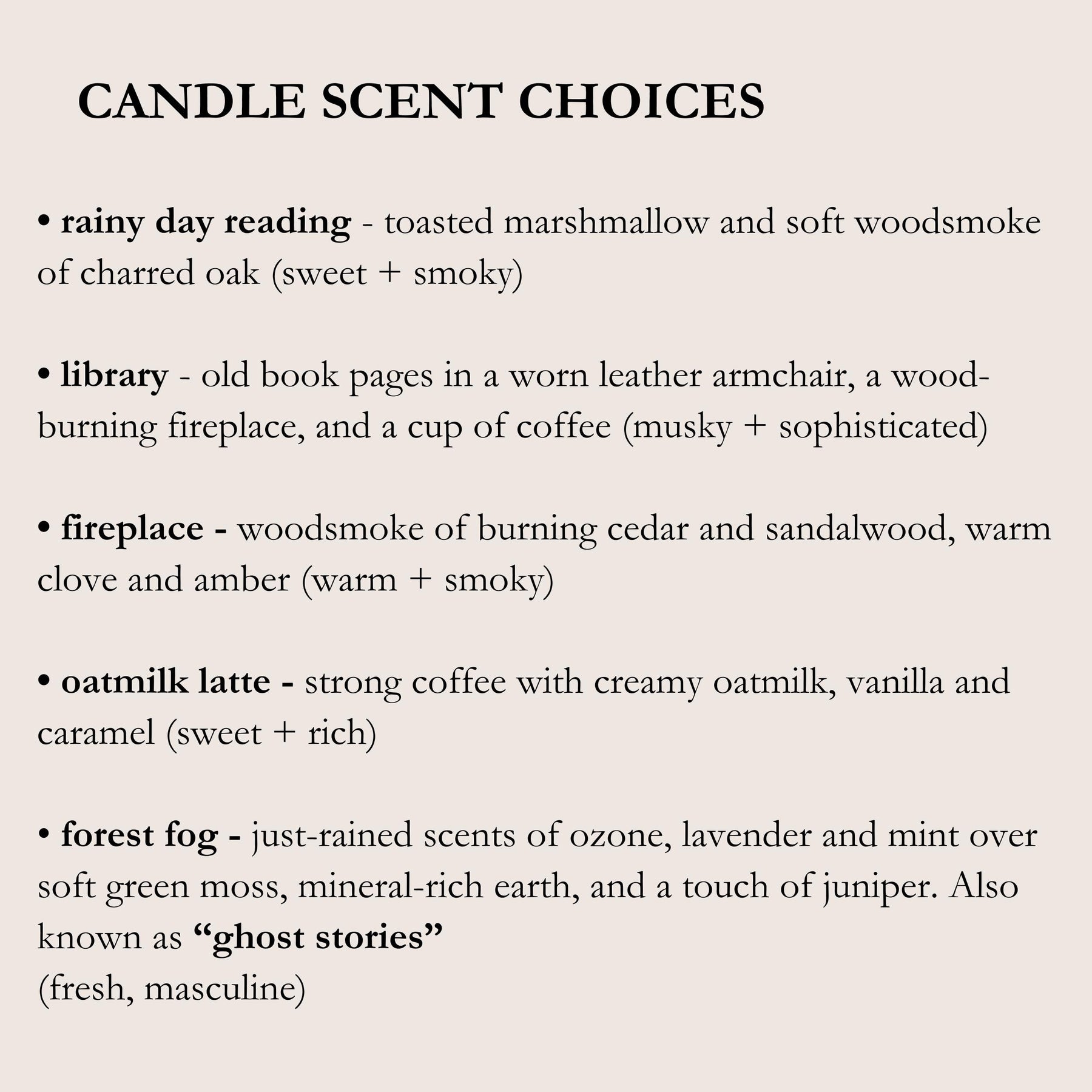 just-rained scents of ozone, lavender and mint over soft green moss, mineral-rich earth, and a touch of juniper. Also known as “ghost stories”